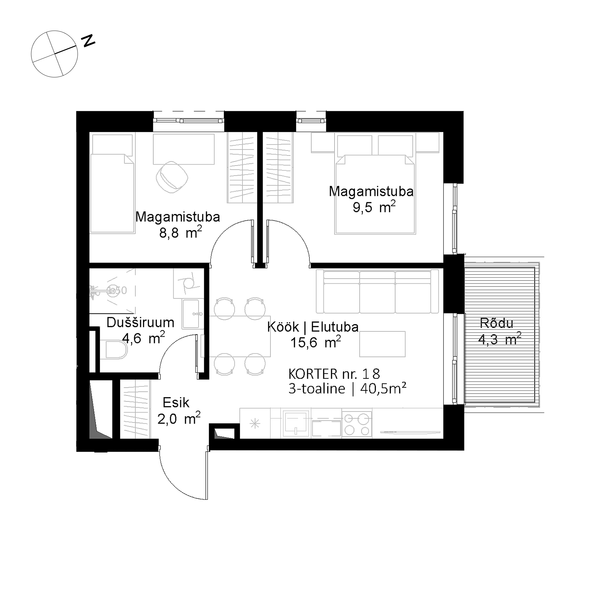 2-toaline (40,5 m²) → 3-toaline – 7000 € hinnale lisaks