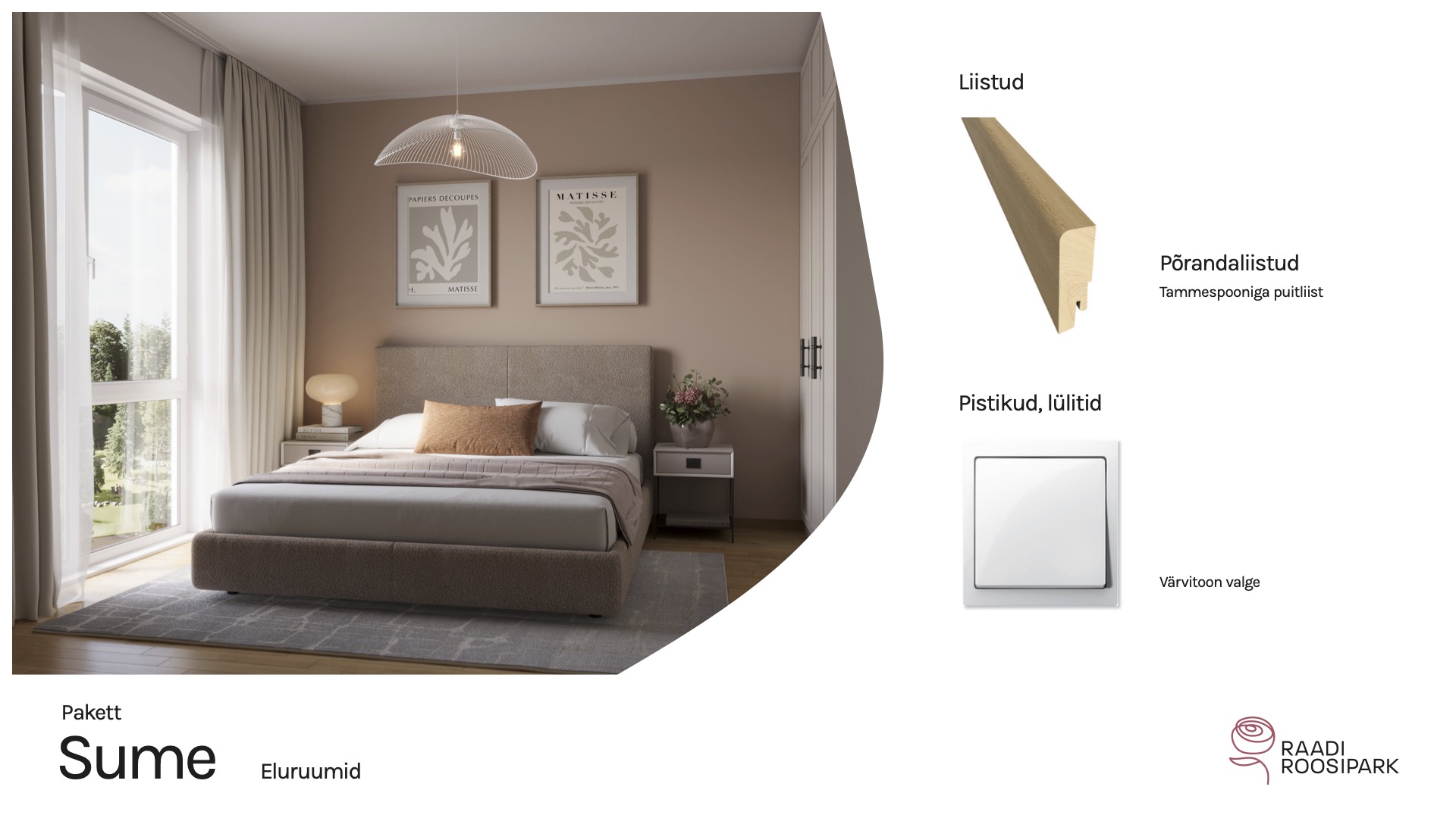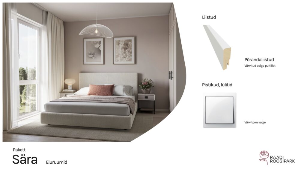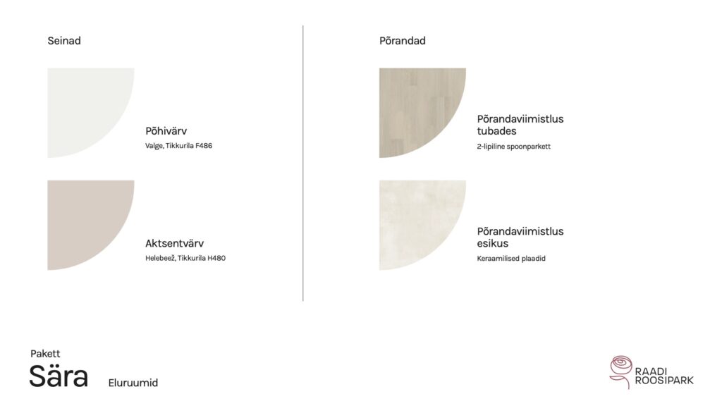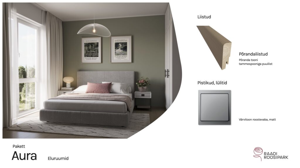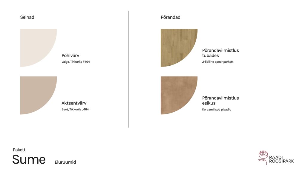 Kodulehe pildid on illustratiivsed ja võivad erineda lõplikust elukeskkonnast. Viimistlusmaterjalide või toodete tarnimise probleemide korral on arendajal õigus neid samaväärsetega asendada. Arendajal on ka õigus hindu muuta.