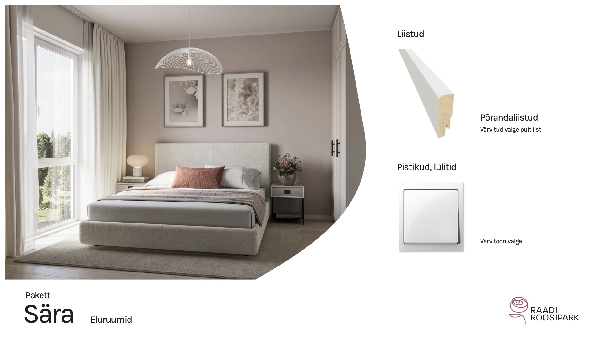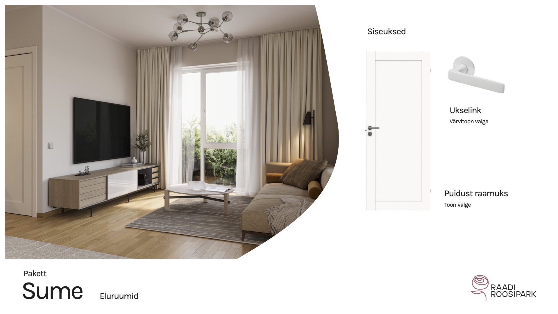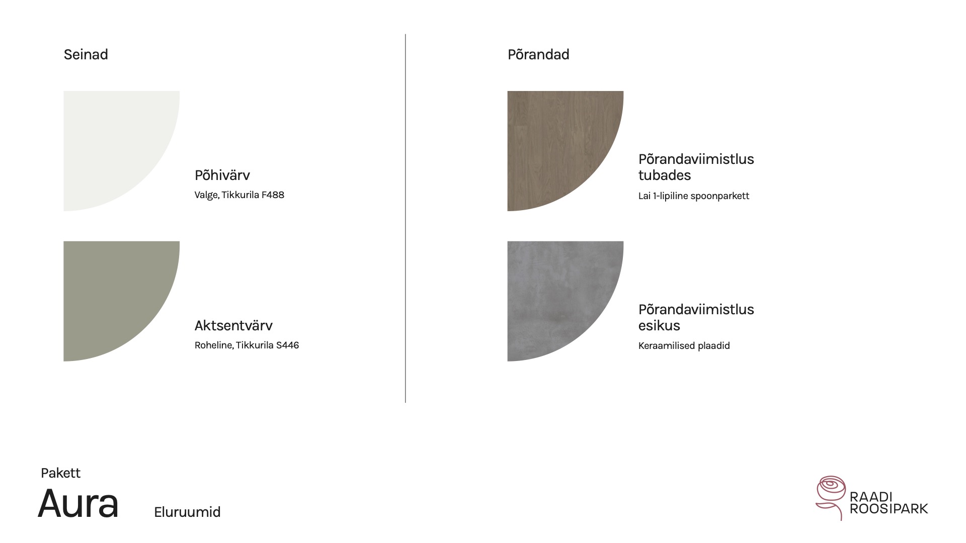 Kodulehe pildid on illustratiivsed ja võivad erineda lõplikust elukeskkonnast. Viimistlusmaterjalide või toodete tarnimise probleemide korral on arendajal õigus neid samaväärsetega asendada. Arendajal on ka õigus hindu muuta.